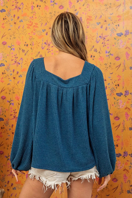 2TONE WAFFLE SQUARE NECK SHIRRED TOP