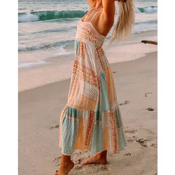 Boho Floral Short Sleeve Lace-up V Neck Mini Dress