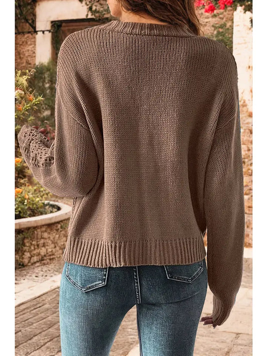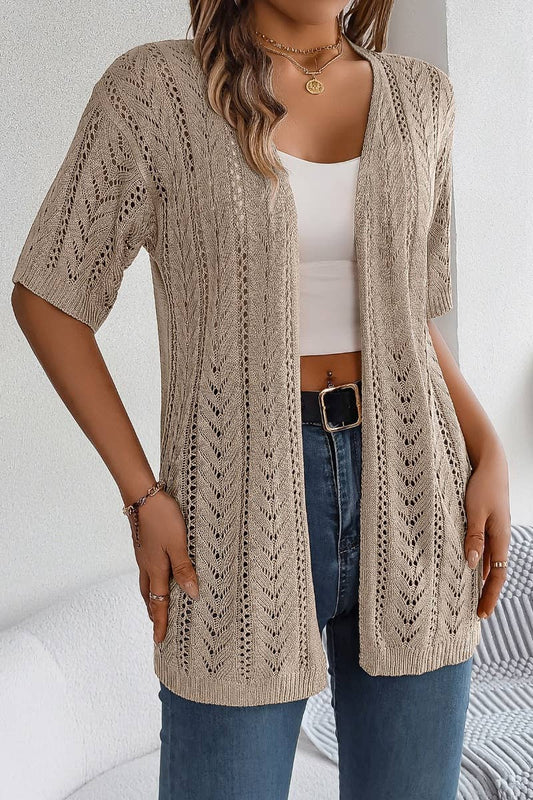 Sold outSHORT-SLEEVED HOLLOW-KNIT CARDIGAN